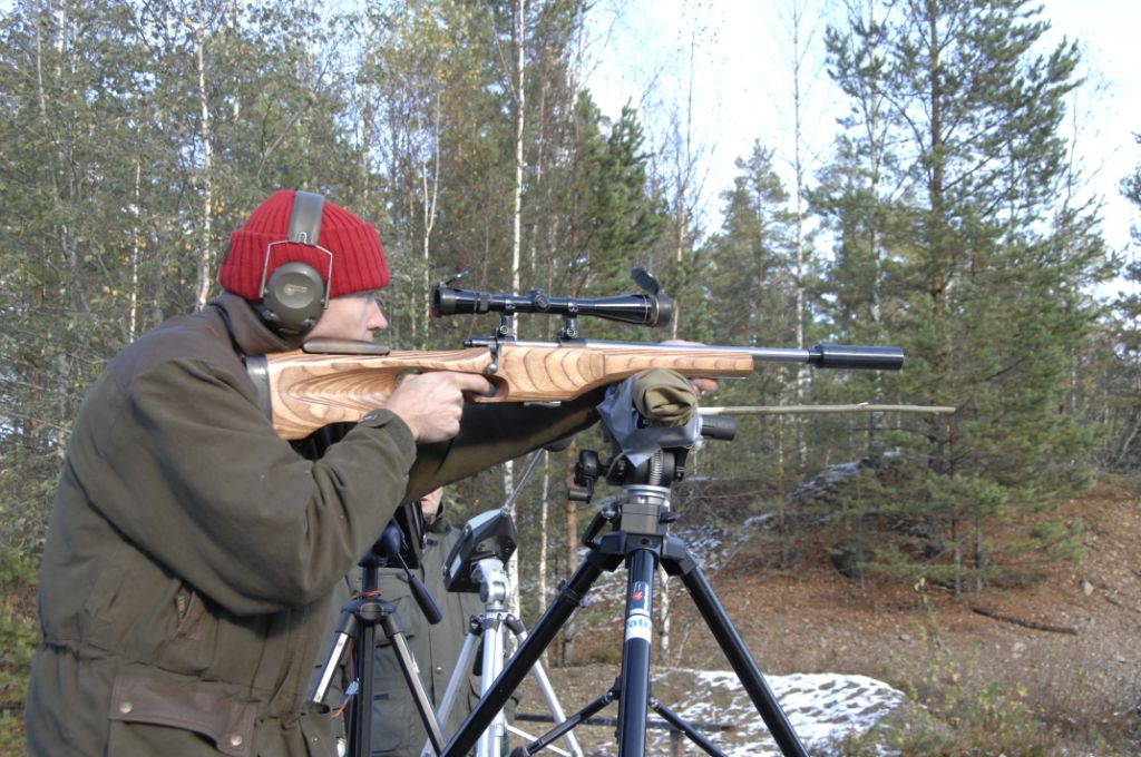 Vammala 12.10.2007Seppä itse ampumassa Kaliiberi-lehden järjestämää vaimennintestiä